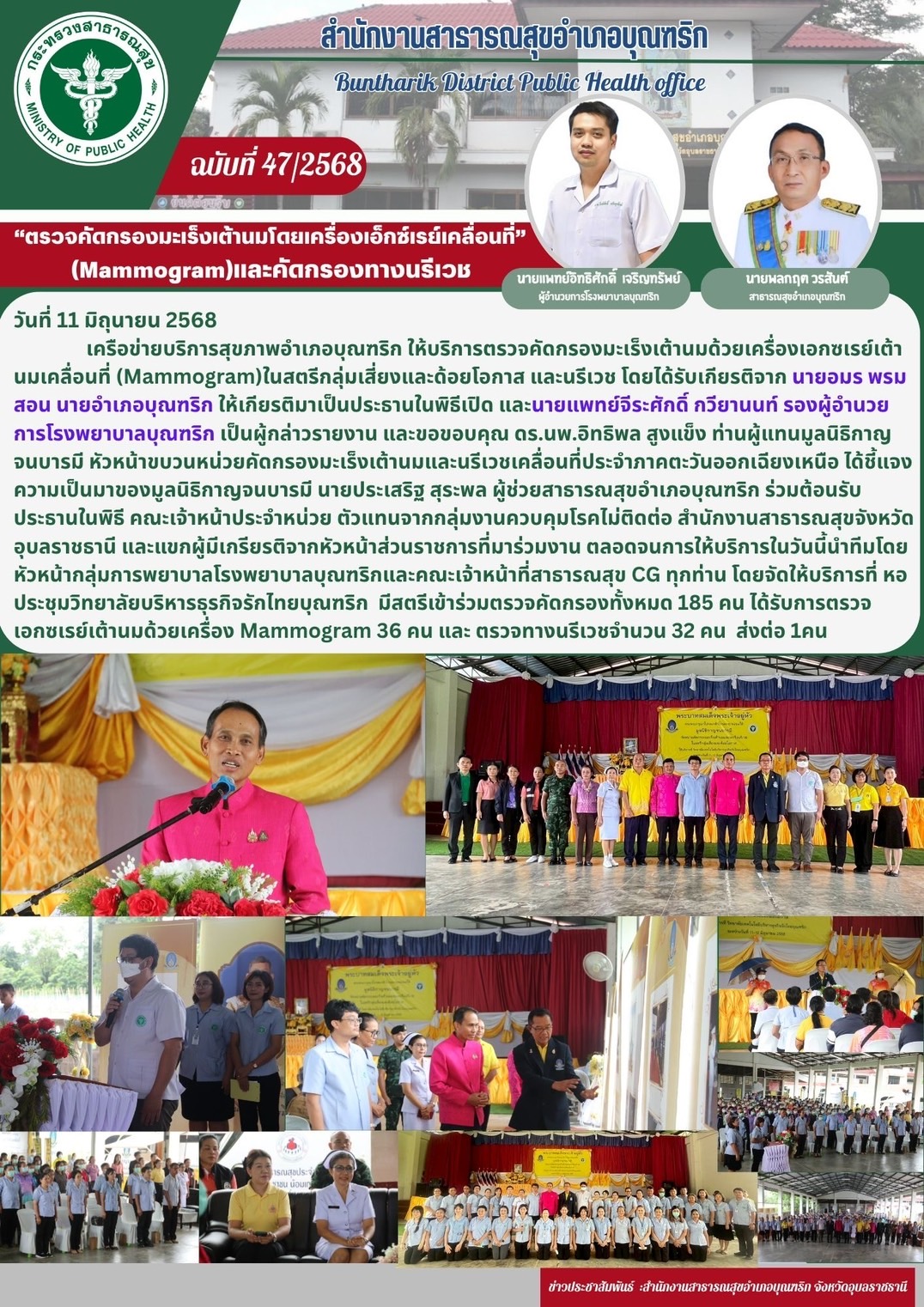 "โครงการคัดกรองมะเร็งเต้านมและนรีเวช เฉลิมพระเกียรติฯ” ณ อำเภอบุณฑริก จังหวัดอุบลราชธานี"