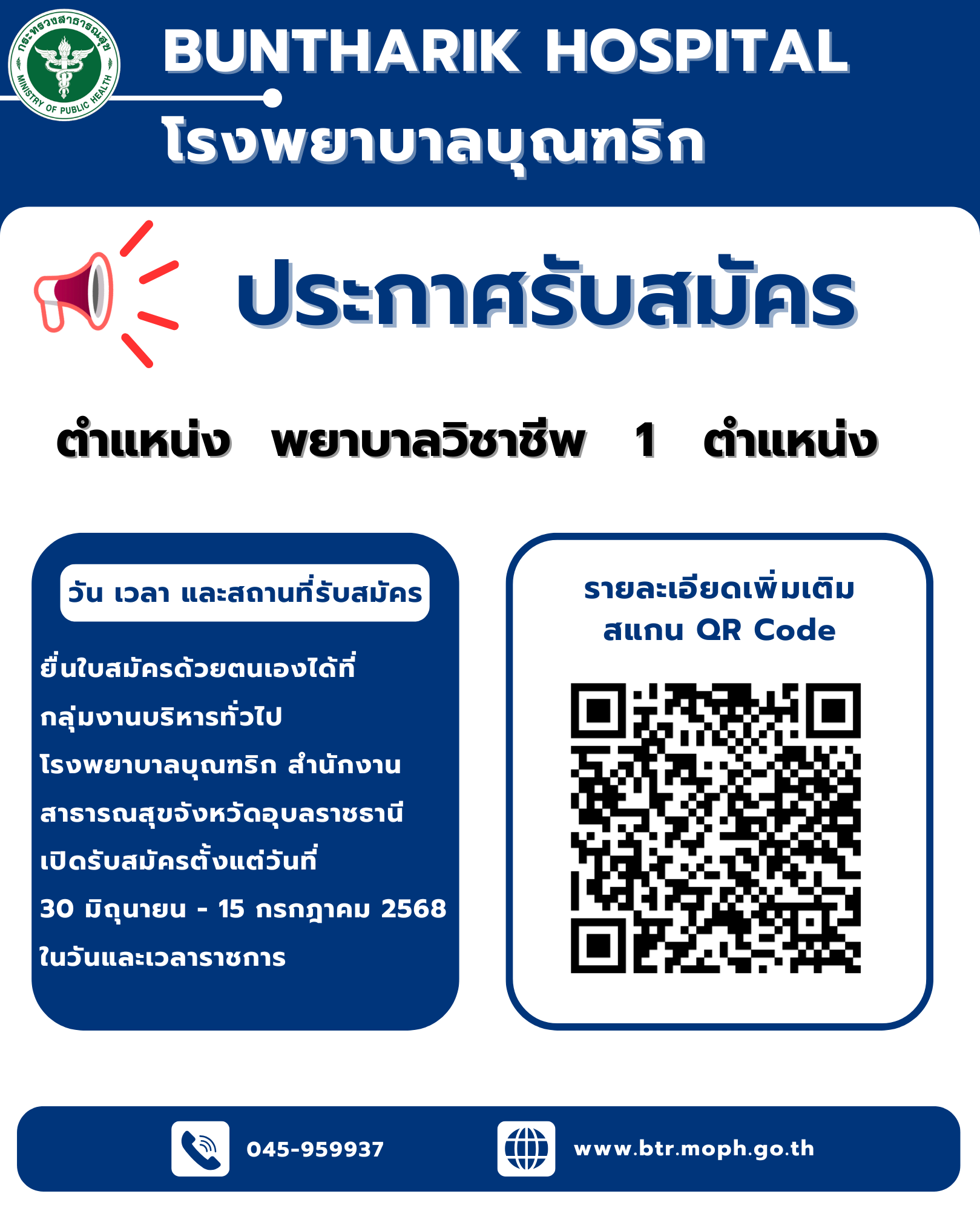 ประกาศโรงพยาบาลบุณฑริก เรื่อง รับสมัครบุคคลเพื่อสรรหาและเลือกสรรเป็นลูกจ้างชั่วคราวเงินบำรุง (รายเดือน)